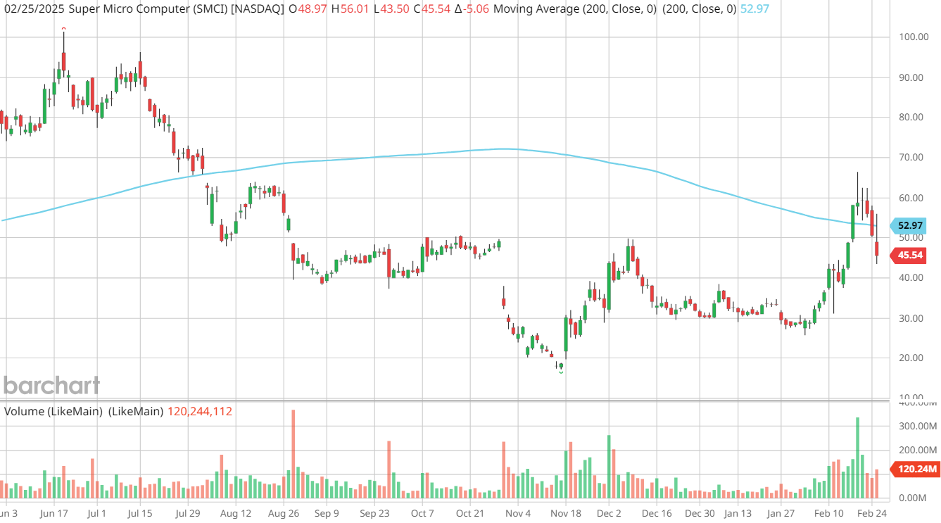 Today marks the deadline for the artificial intelligence (AI) server company to file its outstanding financial paperwork or risk being delisted from the Nasdaq, which would likely trigger mass selling by institutional investors. While SMCI could still manage to hit the buzzer on its deadline, Barchart’s Sarah Holzmann highlights 3 reasons why investors might want to skip the stock anyway.