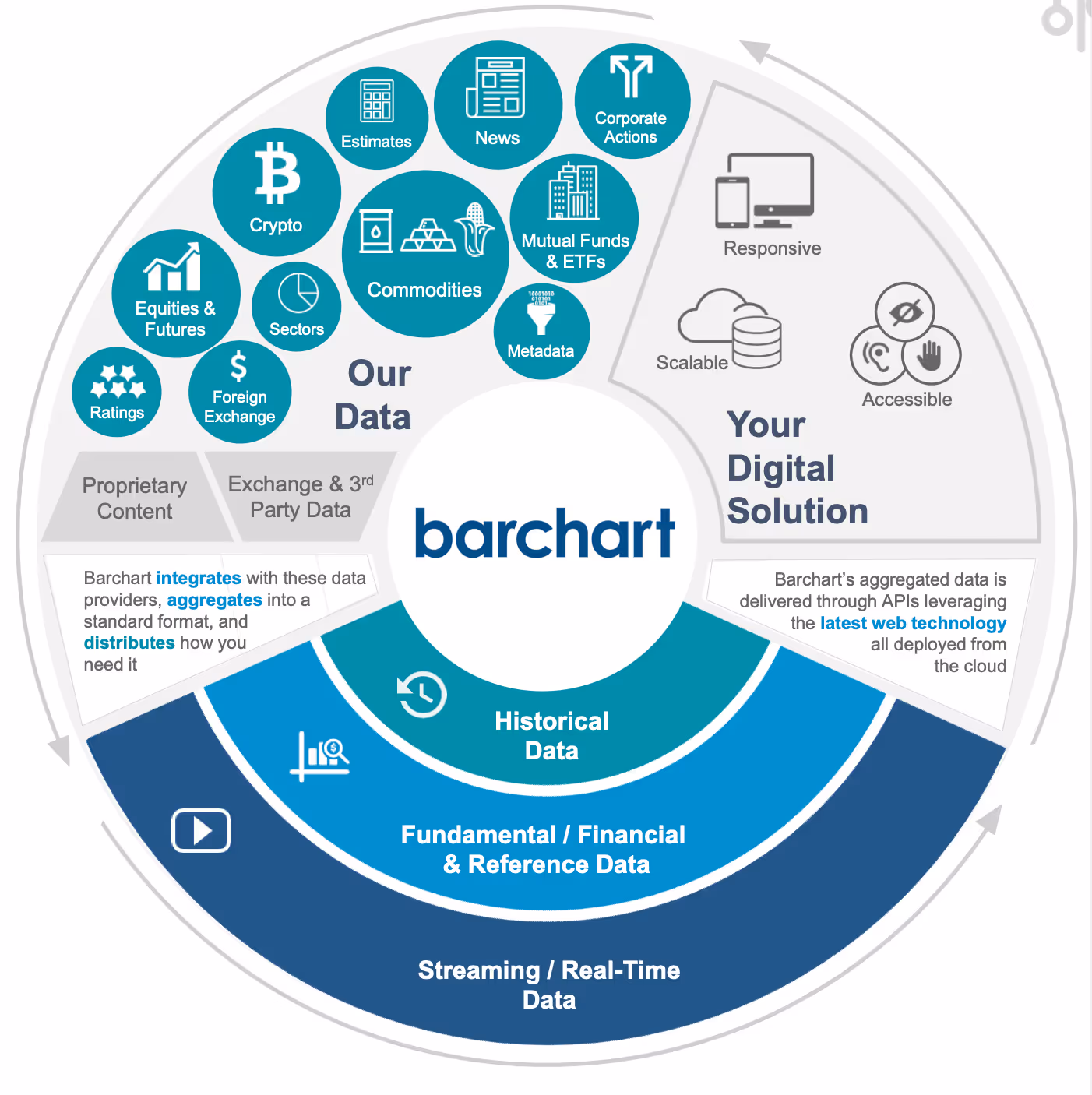 Barchart delivers the data, analytics, news, and tools you need to power your financial portal – all seamlessly and cohesively integrated with your brand. Global Media, Brokerages, Wealth Managers, and Banks, and Corporates all put their trust in Barchart to transform complex financial information into engaging and interactive user experiences.