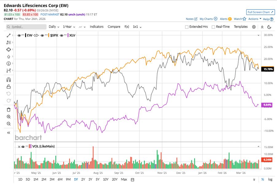 Edwards Lifesciences Corporation (EW), headquartered in Irvine, California, provides products and technologies for structural heart disease and critical care monitoring. Valued at $48 billion by market cap, the company offers products such as tissue replacement heart valves, heart valve repair, hemodynamic monitoring devices, angioscopy equipment, oxygenators, and pharmaceuticals. The leading global structural heart innovation company is expected to announce its fiscal first-quarter earnings for 2026 in the near term.