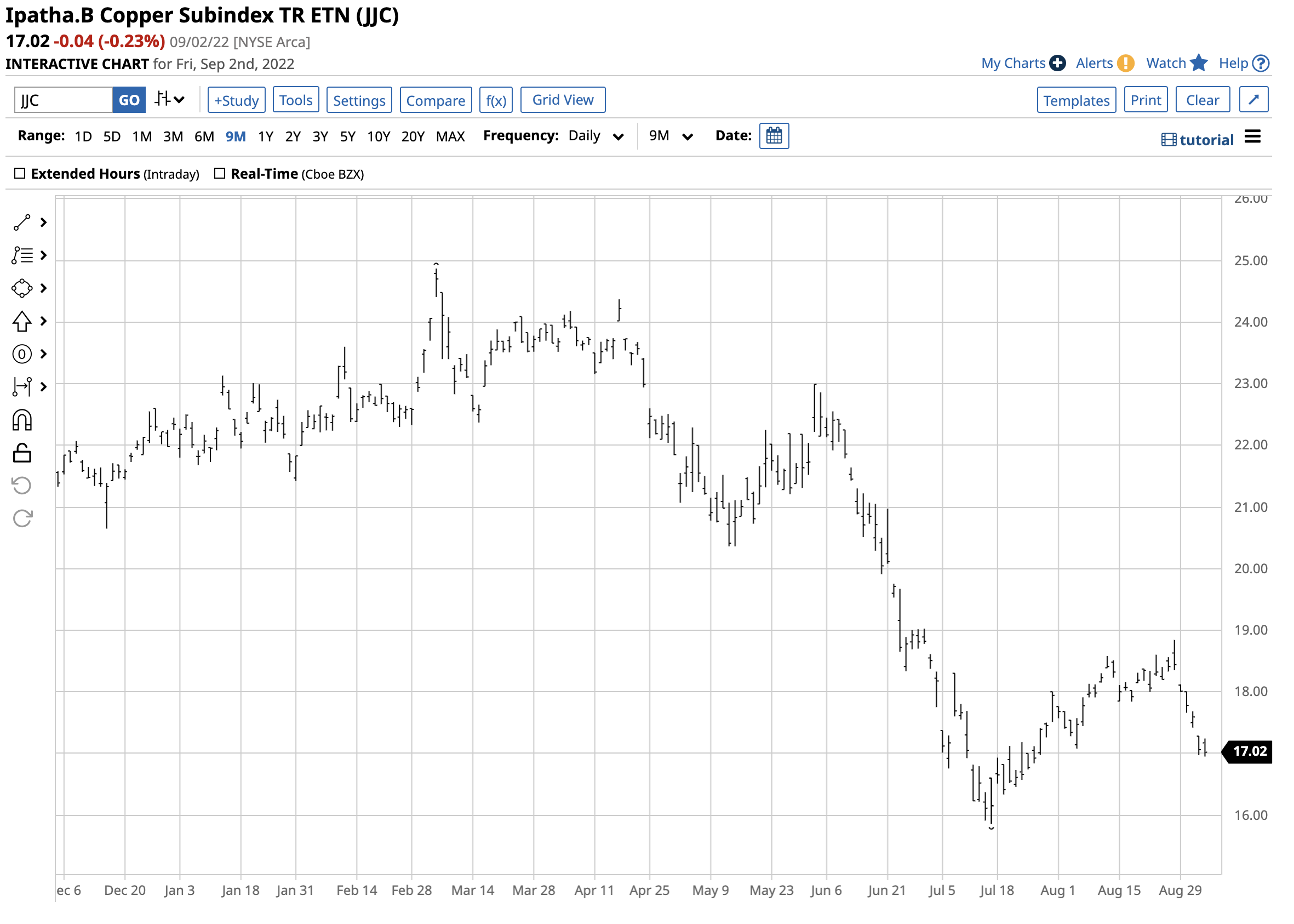 Over the same period, the JJC ETN rose from $15.86 to $18.84 per share, or 21.2%.Â