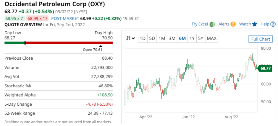 Let’s look at another example, this time using Occidental Petroleum (OXY)