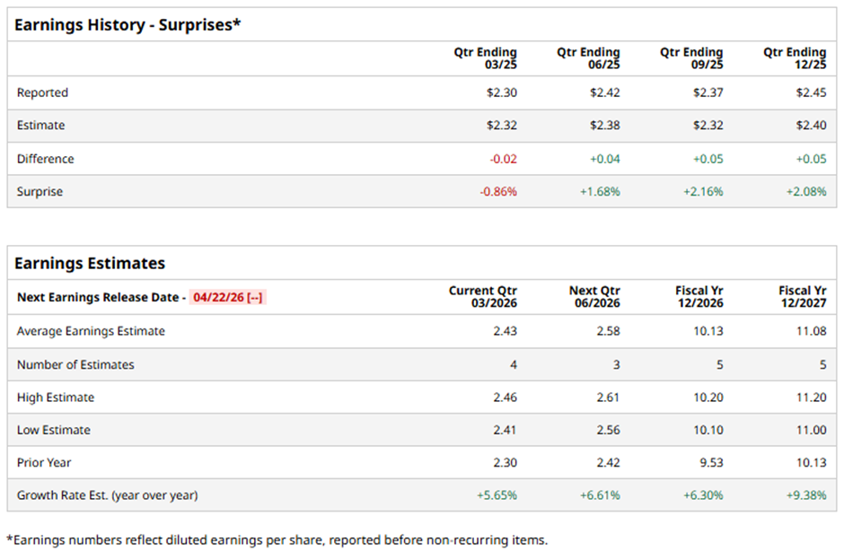 The Mentor, Ohio-based company is set to release its fiscal Q1 2026 results soon. Ahead of this event, analysts project AVY to report an adjusted EPS of $2.43, a rise of 5.7% from $2.30 in the year-ago quarter. It has exceeded Wall Street's earnings estimates in three of the last four quarters while missing on another occasion.