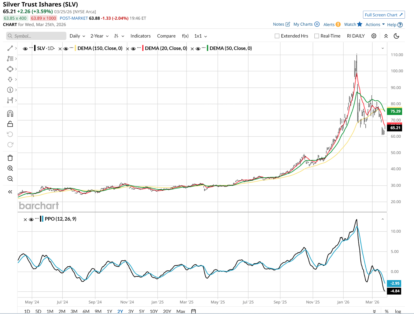 SLV’s dramatic transition from a parabolic runner to a struggling asset is what makes the collar strategy so relevant for SLV right now.