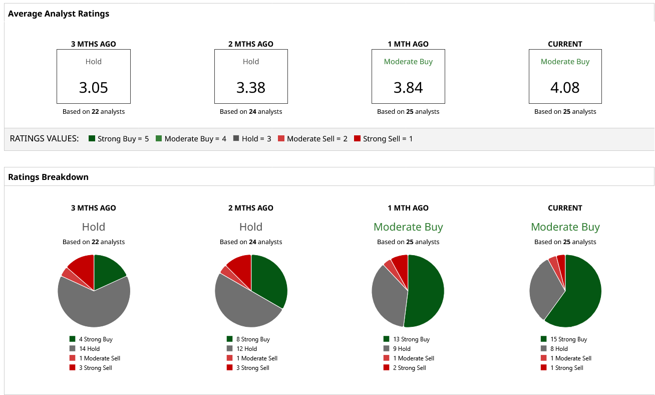 Analysts on Wall Street are still constructive but not blindly bullish, with a “Moderate Buy” rating consensus. The range of price targets varies from $90 at the low end to $260 at the high end, while the mean is $201.32. Based on the current stock price of about $145, its mean price target of $201.32 implies a potential gain of approximately 39%.