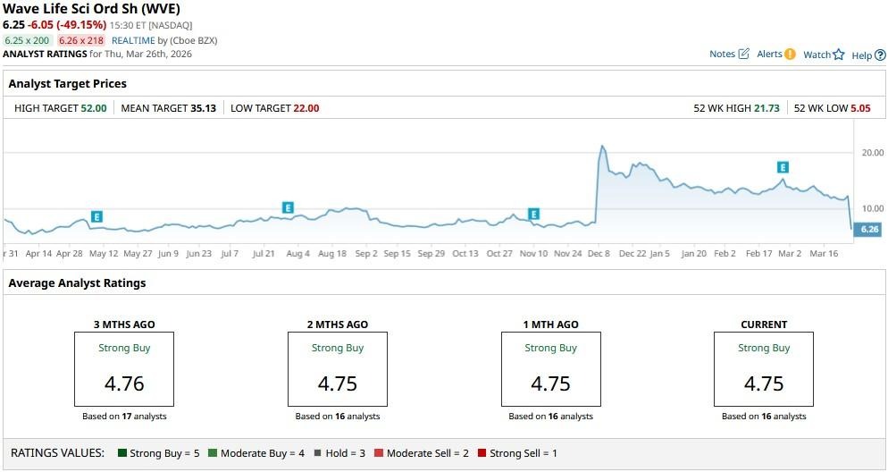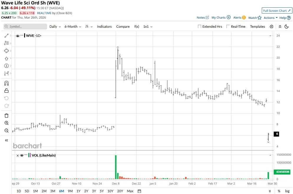 Despite the carnage, Oppenheimer’s senior analyst Cheng Li maintained an “Outperform” rating on Wave Life Sciences shares on Thursday, with a $32 price target indicating they could 5x from here