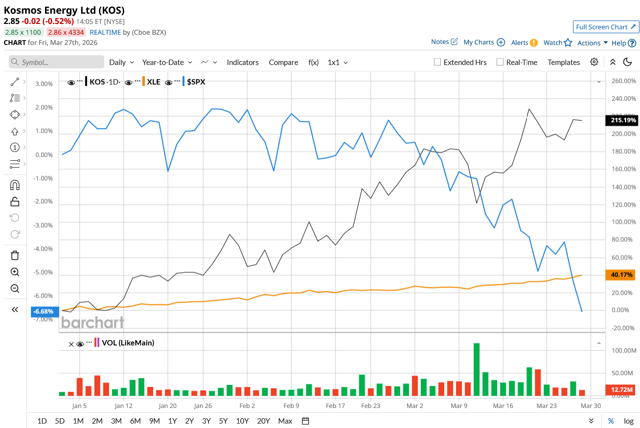 One small-cap energy company, Kosmos Energy (KOS), has emerged as an unlikely winner in this scenario. KOS stock has gained a staggering 215% year-to-date (YTD), without any connection to the AI boom and outperforming the broader market.