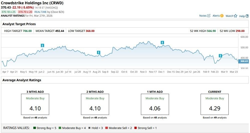The consensus rating on CRWD shares sits at “Moderate Buy” currently with the mean price target of about $492 indicating potential upside of more than 33% from here.