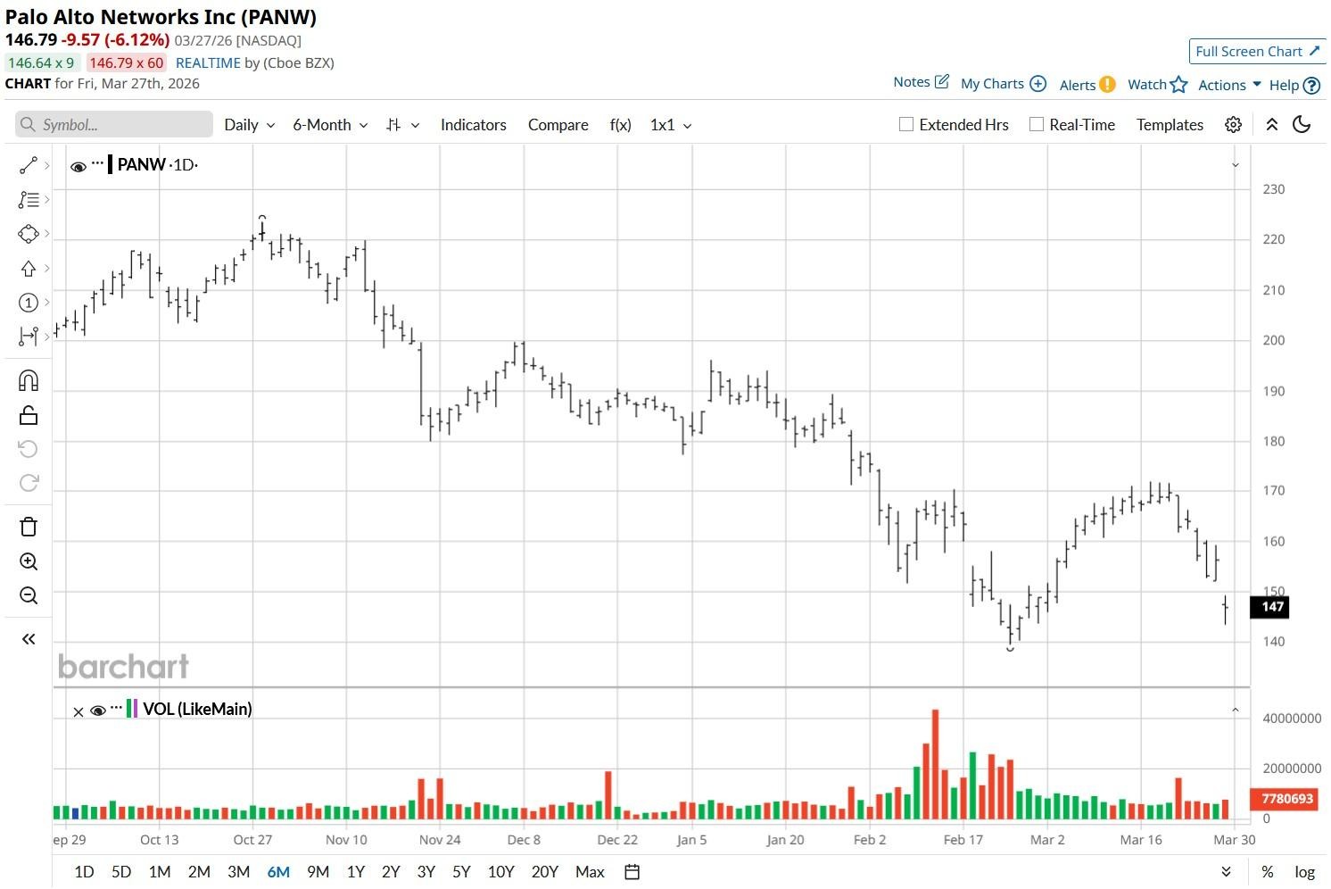 Versus its year-to-date high, Palo Alto Networks stock is now down nearly 25%.