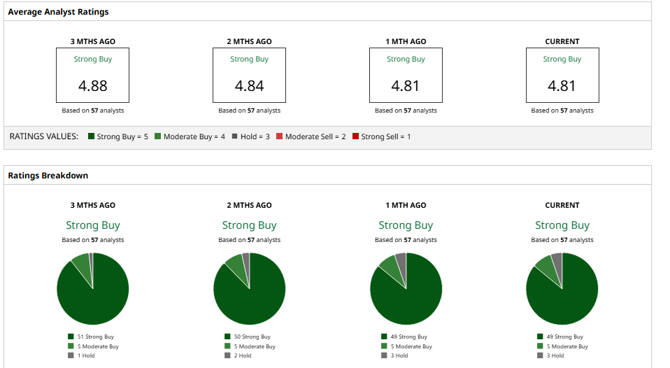 Analysts remain overwhelmingly bullish. Barchart shows a “Strong Buy” consensus rating on NVDA, with an average 12-month price target around $269, implying roughly 56% upside from current levels.