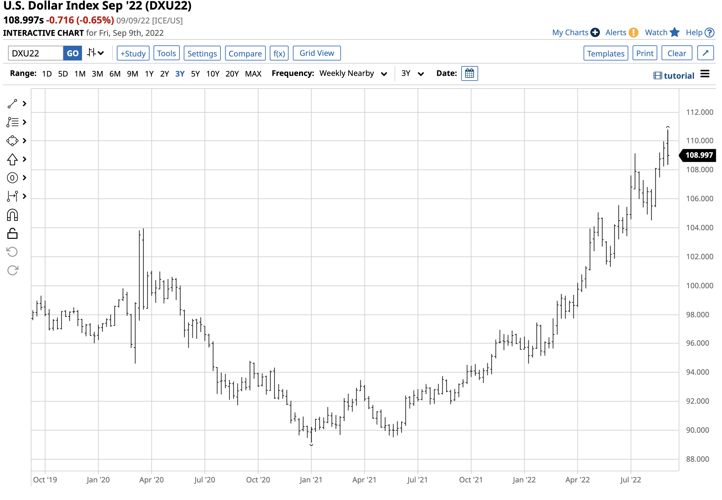 While a bifurcation between the world’s nuclear powers destabilizes the world and could lead to changes in the global economy, so far, the dollar has benefited from the tensions as the trend remains bullish, and the greenback is trading at a two-decade high. One factor that makes the dollar index so strong is its 57.6% exposure to the euro currency. The euro has weakened and was trading below parity against the US dollar on September 9 because the war in Ukraine is on Western Europe’s doorstep.Â