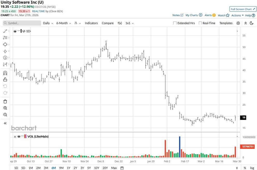 Despite today’s surge, however, Unity stock remains down nearly 60% versus its year-to-date high.