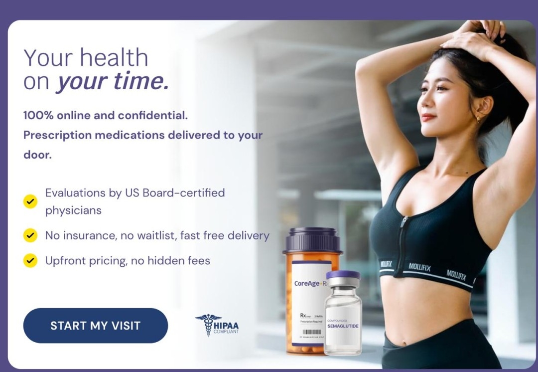 CoreAge Rx is a telehealth company based in Wichita Falls, Texas, providing affordable, physician-supervised prescription therapies for weight management, men’s health, and anti-aging. Patients receive confidential consultations with U.S. board-certified physicians, personalized treatment plans, and compounded medications delivered with free shipping. For more information, visit www.coreagerx.com.