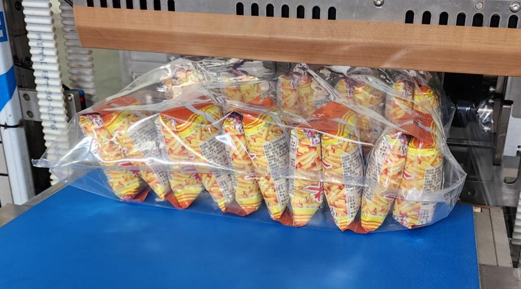 In food processing plants, once products are filled into plastic bags, commonly referred to as pillow bags or sachets, they often accumulate at the end of the production line, which leads to a series of problems, such as bottlenecks, excessive manual labor, and inadequate grouping and presentation.