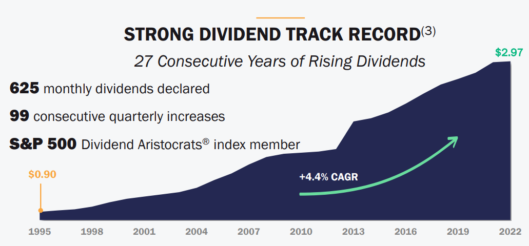 This shows that the 24.75 cents monthly dividend, or 74.25 cents quarterly, is still more than covered by the 97 cents AFFO cash flow figure. In other words, the company can afford this monthly dividend payment.