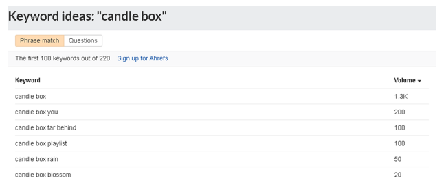 You can use a tool called Keywords Explorer from Ahrefs. Enter your seed keyword and go to the “Matching terms” report. Click the “Phrase match” tab and rip the benefits.