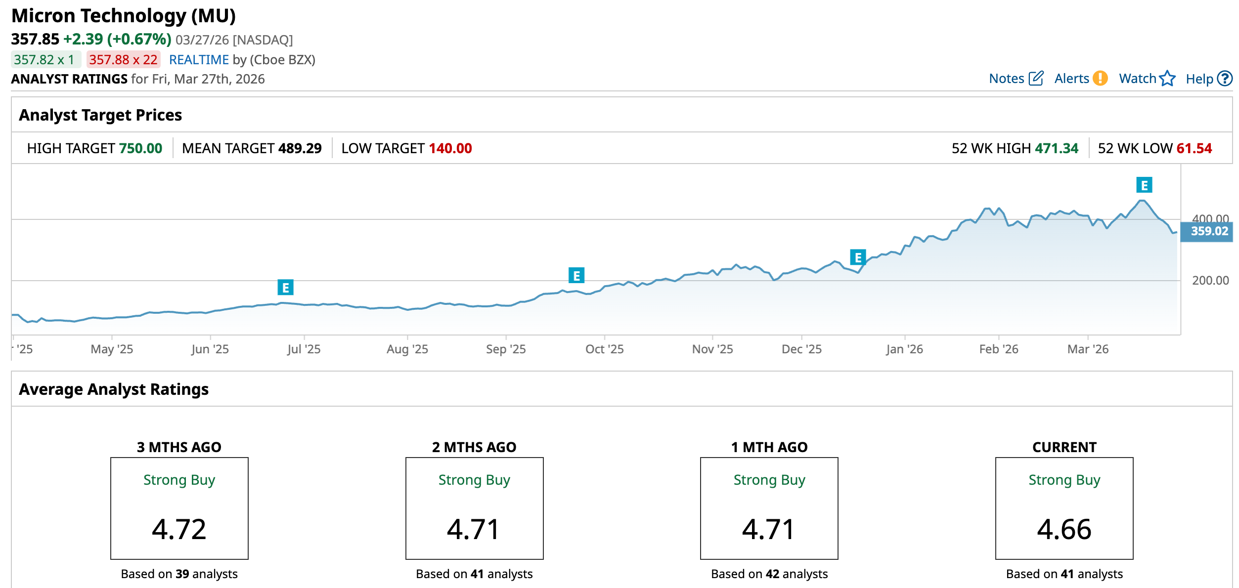 Wall Street continues to show conviction in Micron, and recent analyst moves underline that stance. Bank of America raised its price target to $500 from $400 after the latest quarterly results, signaling stronger confidence in the company’s trajectory.