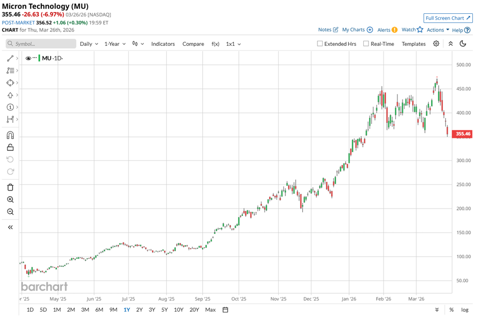 Investors moved quickly to interpret the implications for Micron. If AI systems can deliver more output with less memory, the long-term demand trajectory for memory chips could moderate. The concern triggered a broader sell-off across memory stocks, with Micron at the center of the reaction given its direct exposure to AI-driven demand.