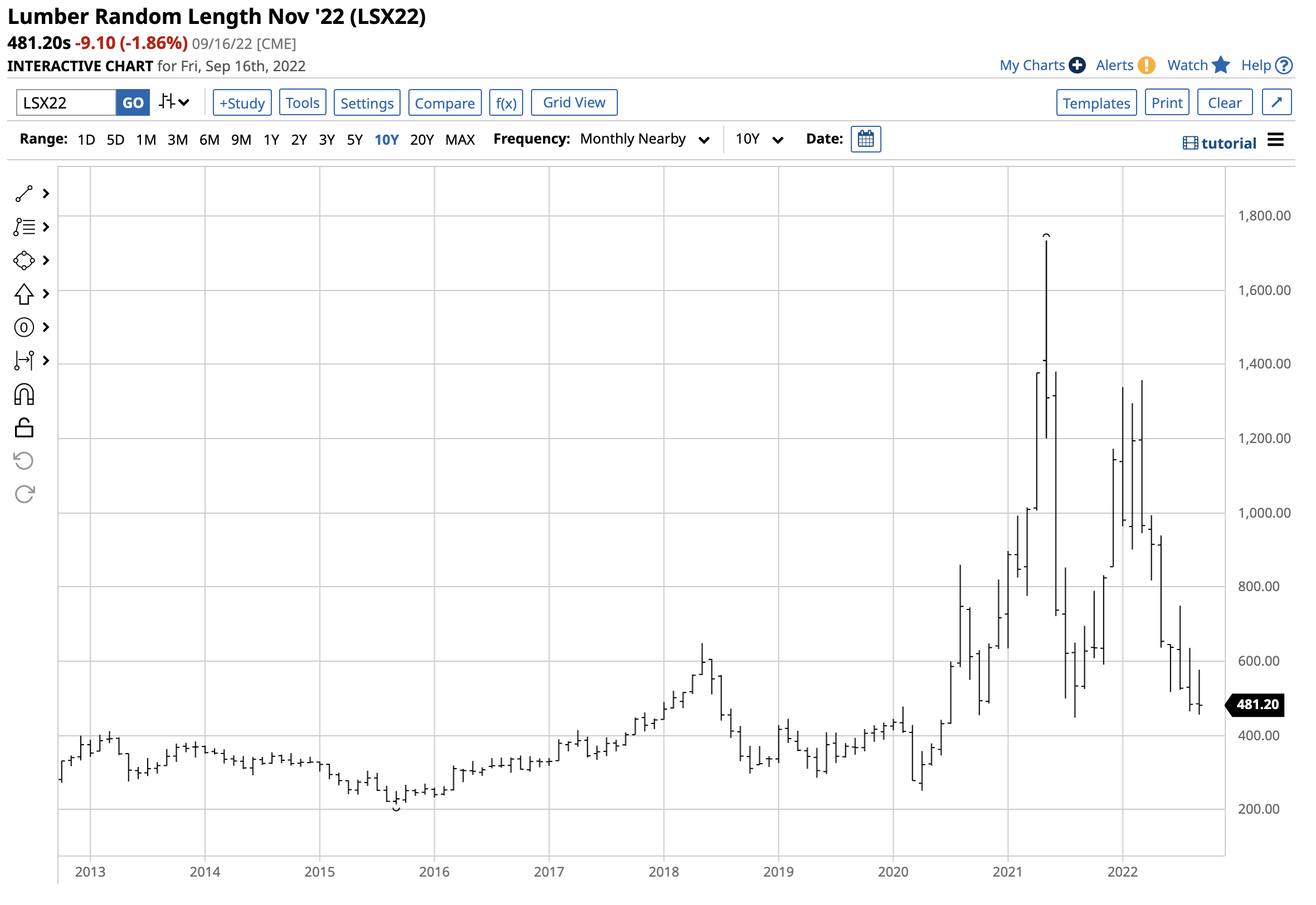 Moreover, as the US economy continues to contract, the US central bank could curb its enthusiasm for rate hikes in early 2023. Many Fed economists expect the short-term rate to rise to the 4% level by the end of 2022. However, another one or two quarterly GDP declines would likely cause the Fed to slow the ascent of interest rates or even stop hiking rates to stem economic contraction. The uncertainty could lead to increased volatility in markets across all asset classes. As one of the most volatile markets, lumber could experience further explosive and implosive price movement, as we have witnessed over the past years.