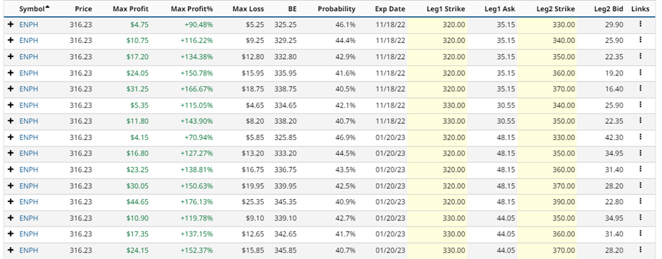 Here are the parameters for finding some bull call spread trade ideas on ENPH.