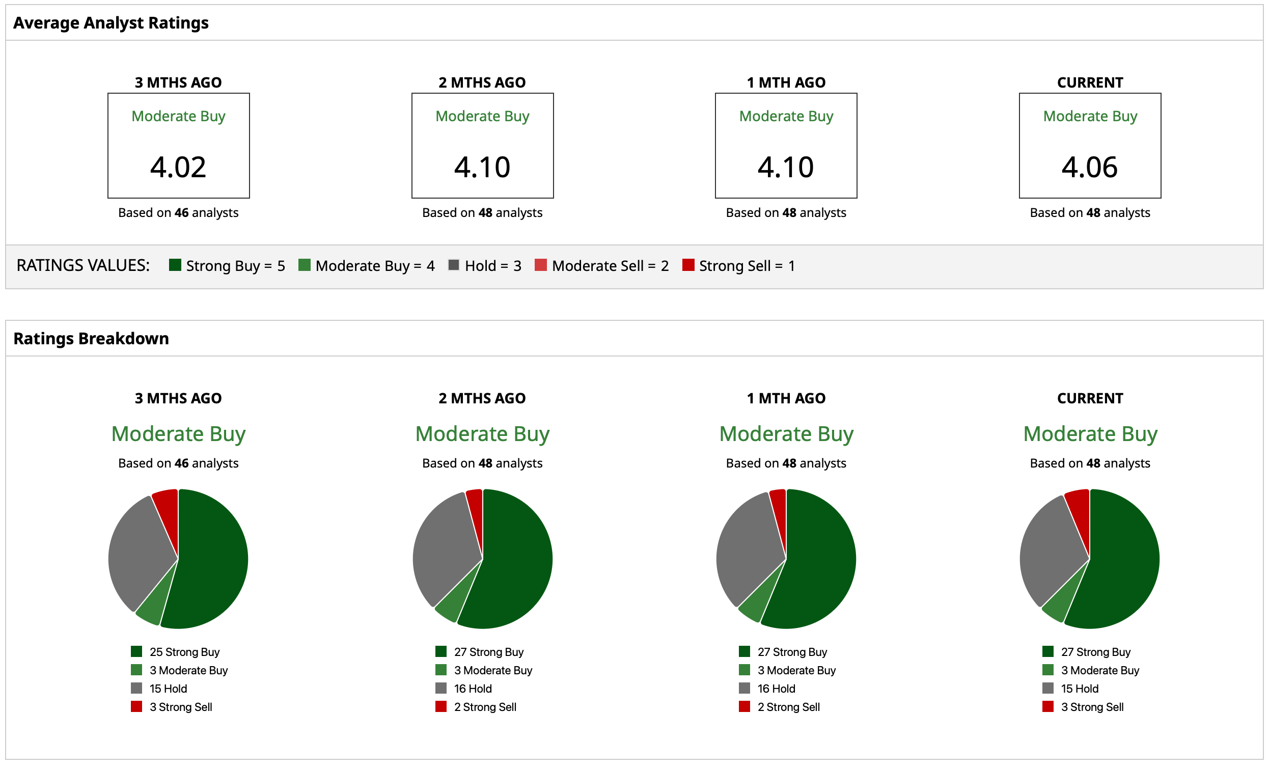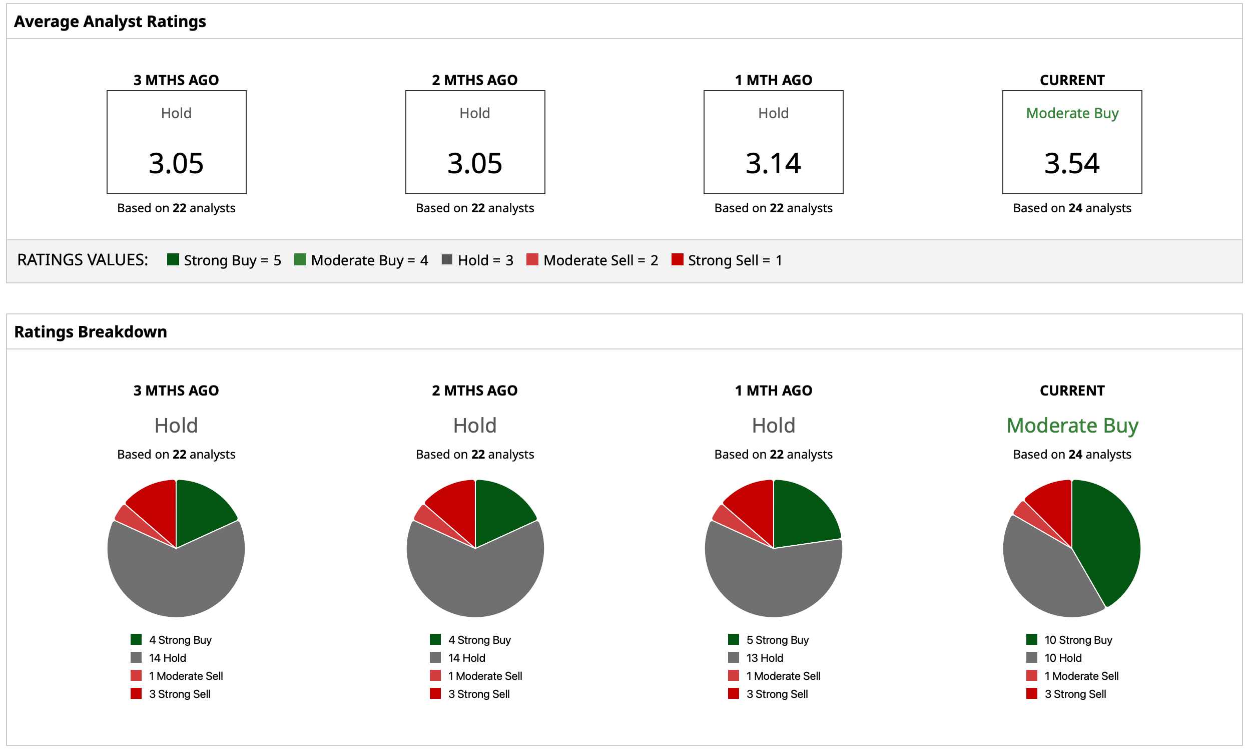 Overall, analysts have deemed PLTR stock a “Moderate Buy” with a mean target price of $198.28, which denotes an upside potential of about 52.5% from current levels. Out of 24 analysts covering the stock, 10 have a “Strong Buy” rating, 10 have a “Hold” rating, one has a “Moderate Sell” rating, and three have a “Strong Sell” rating.