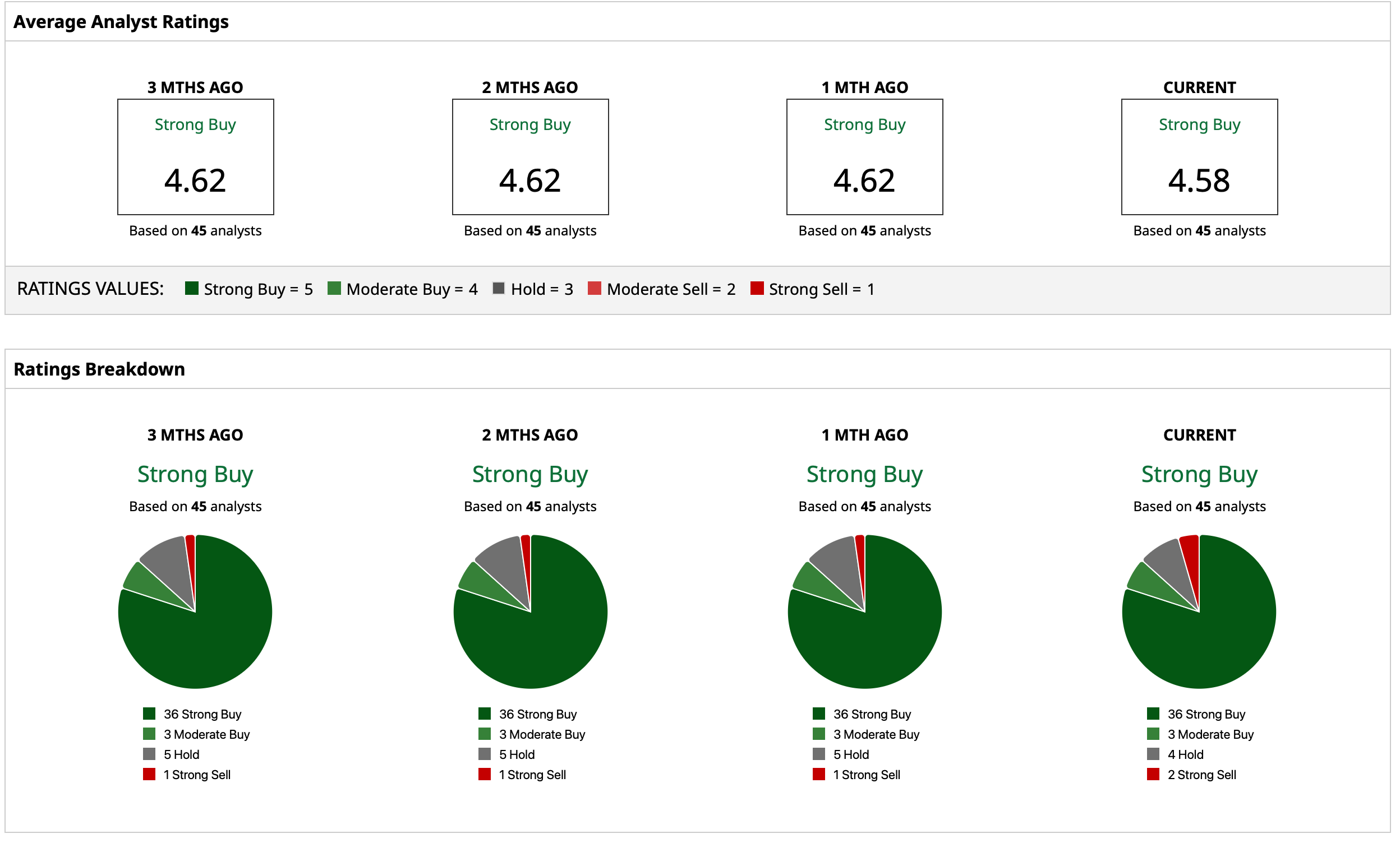Considering this, analysts have earmarked an overall rating of “Strong Buy” for SNOW stock, with a mean target price of $277.07, which denotes an upside potential of about 77% from current levels. Out of 45 analysts covering the stock, 36 have a “Strong Buy” rating, three have a “Moderate Buy” rating, four have a “Hold” rating, and two have a “Strong Sell” rating.