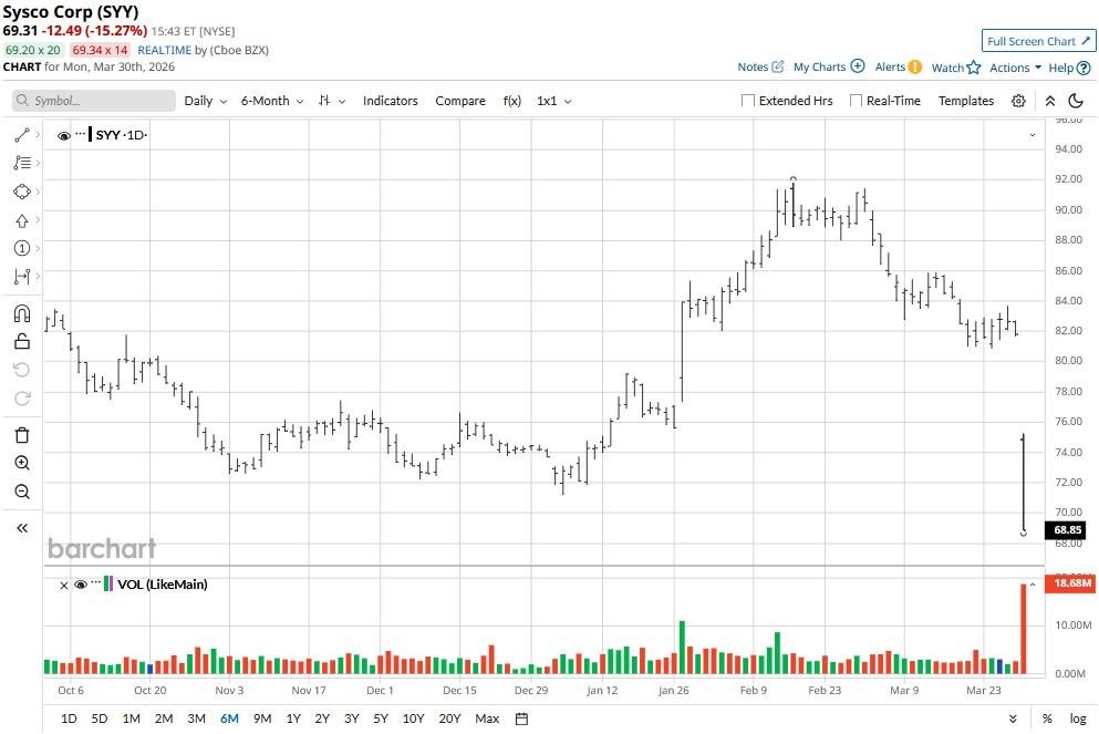 Sysco (SYY) shares were hit hard on March 30 after the food distribution company said it’s spending $29 billion on buying Jetro, a “cash and carry” heavyweight that owns Restaurant Depot. In a post-announcement interview with CNBC, CEO Kevin Hourican dubbed Jetro a “gem of an asset,” but integration risks and the sheer size of this deal still made investors bail on SYY today.
