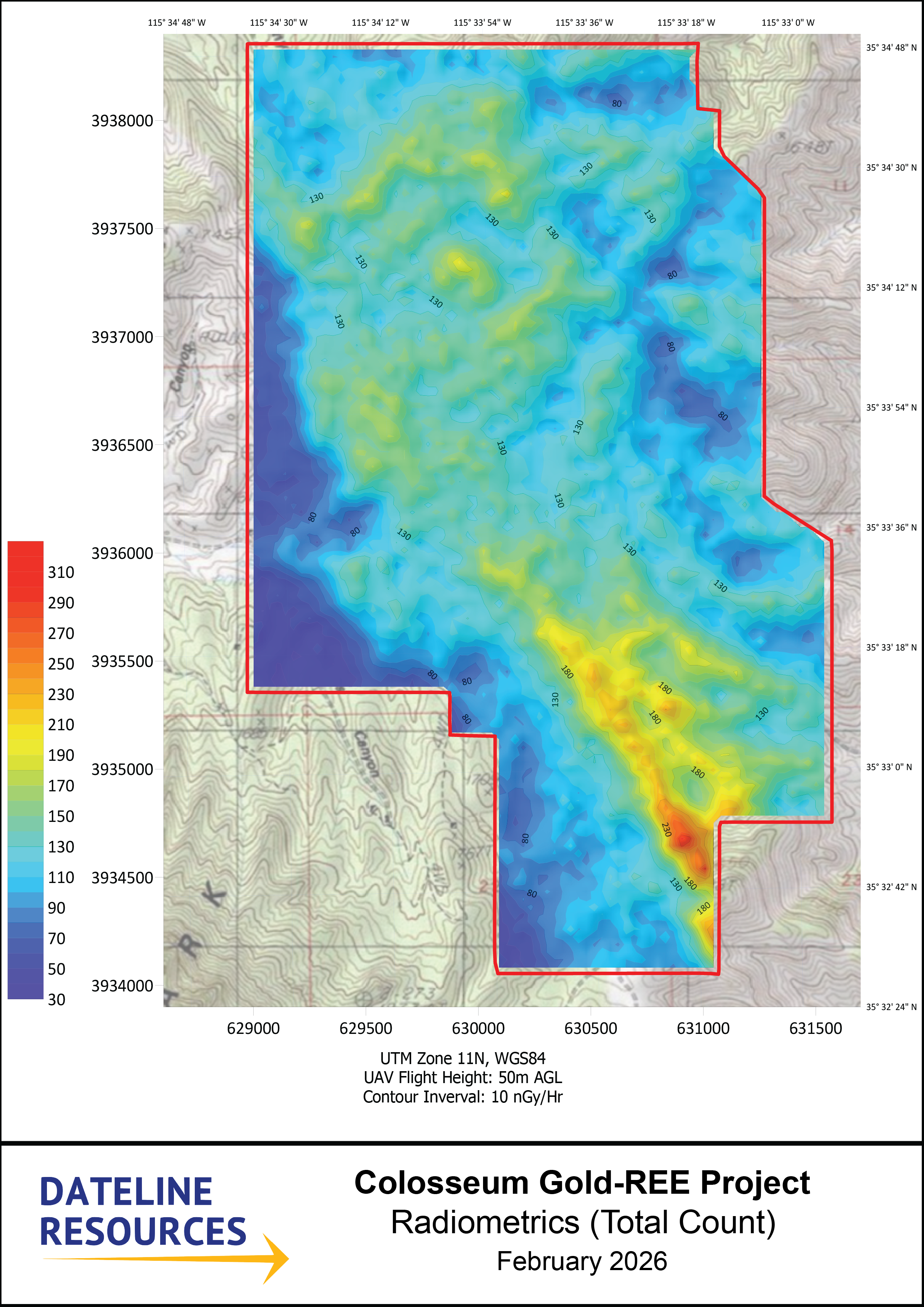 SAN BERNARDINO, CALIFORNIA / ACCESS Newswire / February 9, 2026 / Dateline Resources Limited (ASX:DTR)(OTC-BB:DTREF)(FSE:YE1) is pleased to announce the completion of infill gravity, magnetic and radiometric surveys at its 100%-owned Colosseum Gold and Rare Earth Project in California, USA. This follows the completion of an induced polarisation (IP) survey across the project in December 2025.
