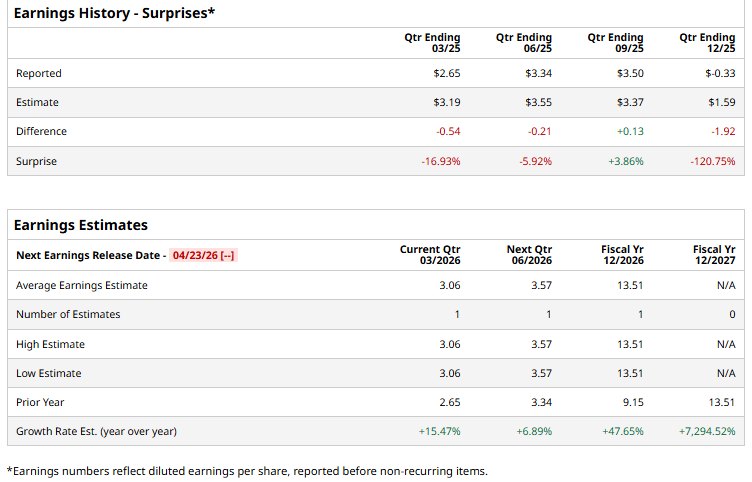 The company is expected to release its fiscal Q1 2026 results soon. Ahead of this event, analysts expect ERIE to report a profit of $3.06 per share, up 15.5% from $2.65 per share in the year-ago quarter. It has missed Wall Street's bottom-line estimates in three of the last four quarters while surpassing on another occasion.