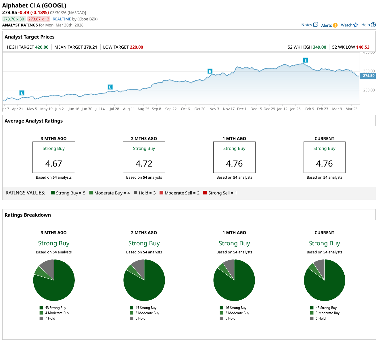 Alphabet stock remains a top-tier AI pick, recently bolstered by Wells Fargo’s price hike on its high-margin TPU deal and Wiz acquisition. This bullish sentiment is well observed across Wall Street with a consensus “Strong Buy” rating with a mean price target of $379.21, reflecting an upside potential of 38% from the current price.