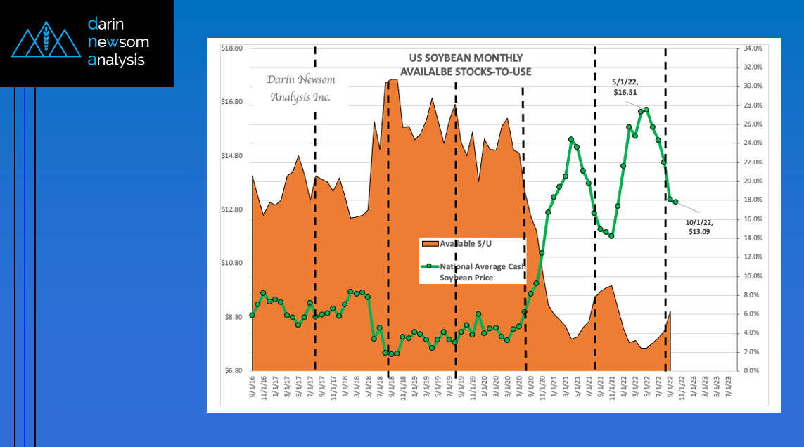 - Something else that needs to be considered, is the US basically ran out of available supplies of soybeans and corn over the spring and summer of 2022, with harvest slowly rebuilding those supplies.Â