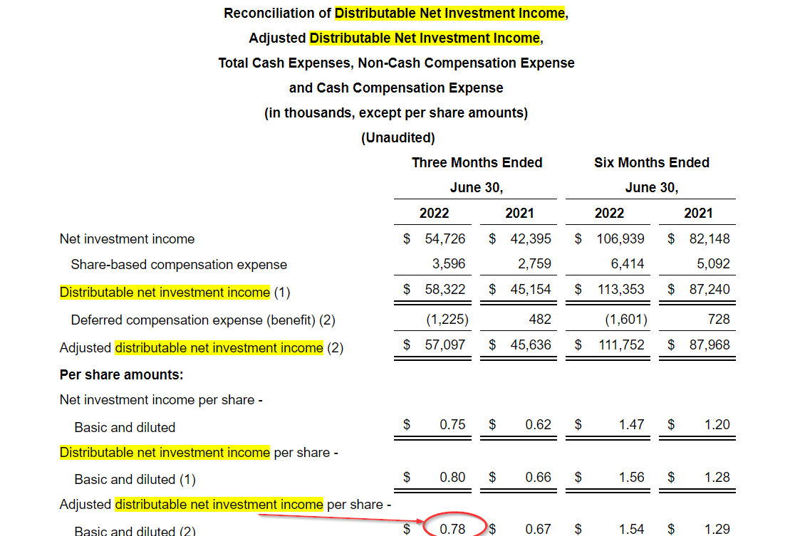 Main Street likes to use a measure called "adjusted distributable net investment income," which is essentially GAAP net income with its stock-based compensation expenses (SBC) added back to GAAP net income. Last quarter (Q2) this raised the figure to 78 cents per share or $3.12 annually, well more than the $2.64 annual dividend.Â
