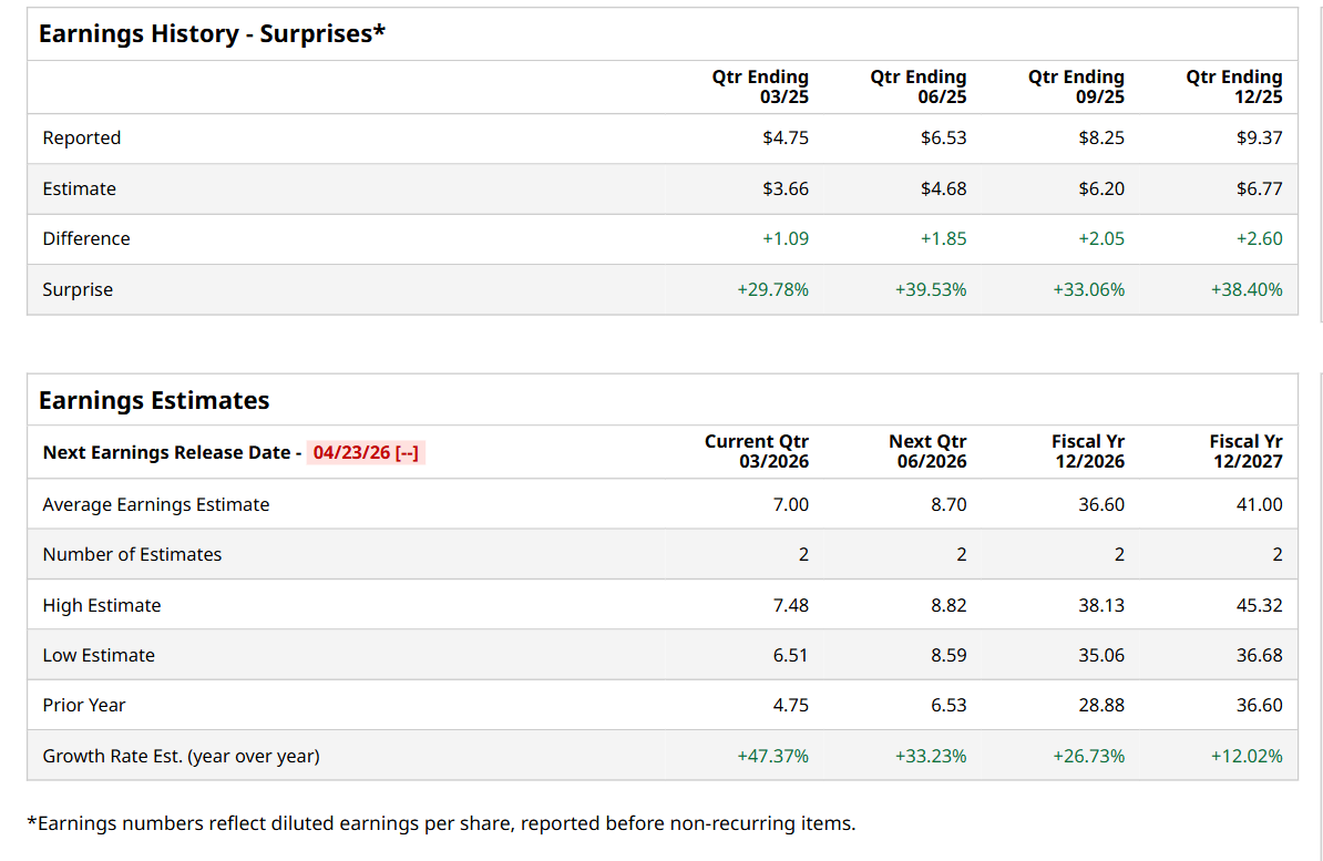 Houston, Texas-based Comfort Systems USA, Inc. (FIX) provides mechanical and electrical installation, renovation, maintenance, repair, and replacement services for the mechanical and electrical services industry. Valued at a market cap of $44.8 billion, the company is expected to announce its fiscal Q1 earnings for 2026 in the near future.