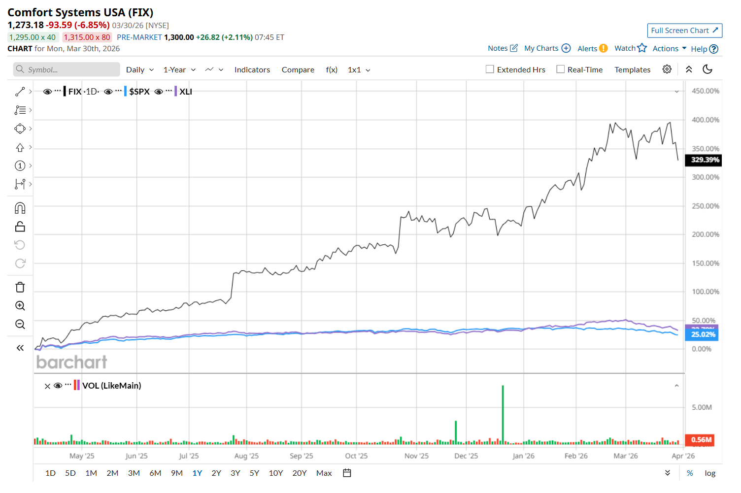 Shares of FIX have skyrocketed 292.8% over the past 52 weeks, significantly outperforming both the S&P 500 Index's ($SPX) 13.7% return and the State Street Industrial Select Sector SPDR ETF’s (XLI) 20.3% uptick over the same time period.