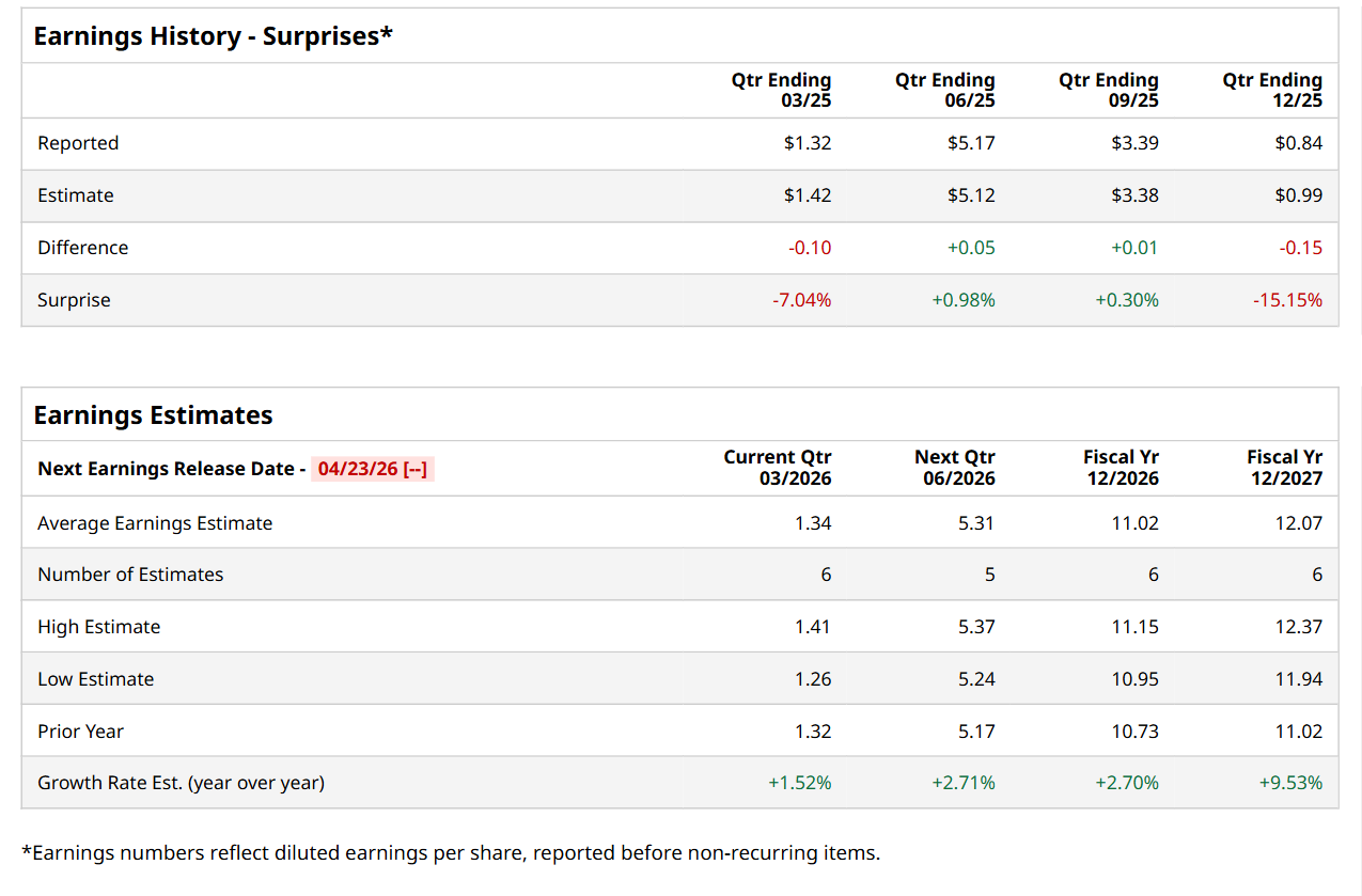 Valued at a market cap of $7.4 billion, Pool Corporation (POOL) distributes swimming pool supplies, equipment, related leisure, irrigation, and landscape maintenance products and services. The Covington, Louisiana-based company is scheduled to announce its fiscal Q1 earnings for 2026 in the near future.