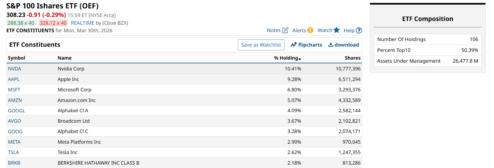 So, it makes sense to look through the entire list, since the market index would not reflect strong moves by any of the stocks below the giant companies.
