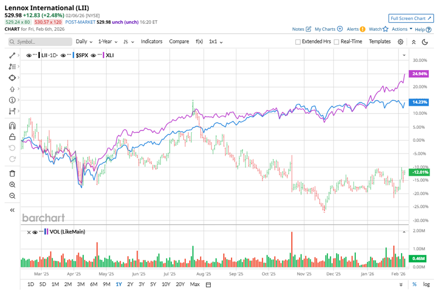 Shares of this leader in energy-efficient climate-control solutions have underperformed the broader market over the past year. LII has declined 9.5% over this time frame, while the broader S&P 500 Index ($SPX) has rallied nearly 14%. However, in 2026, LII’s stock is up 9.1%, surpassing the SPX’s 1.3% rise on a YTD basis.