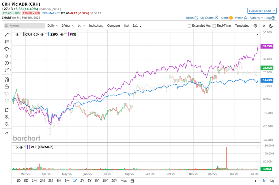 Shares of this cement giant have outperformed the broader market over the past year. CRH has gained 20.9% over this time frame, while the broader S&P 500 Index ($SPX) has rallied nearly 14%. In 2026, CRH’s stock rose 1.9%, surpassing the SPX’s 1.3% rise on a YTD basis.