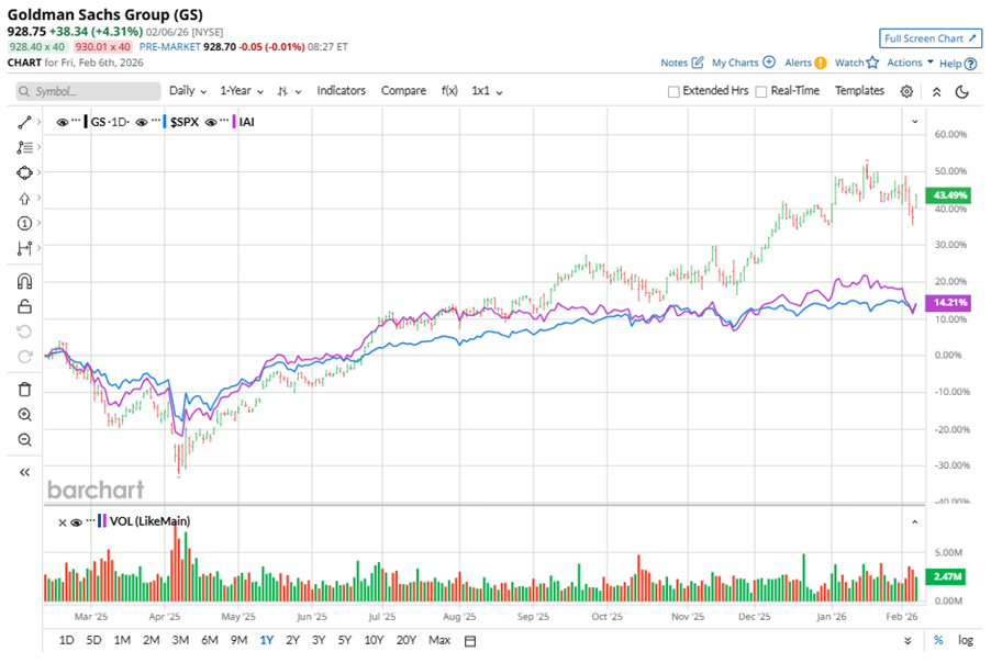 Shares of this leading global investment banking, securities, and asset and wealth management firm have outperformed the broader market over the past year. GS has gained 41.1% over this time frame, while the broader S&P 500 Index ($SPX) has rallied nearly 14%. In 2026, GS stock is up 5.7%, surpassing the SPX’s 1.3% rise on a YTD basis.