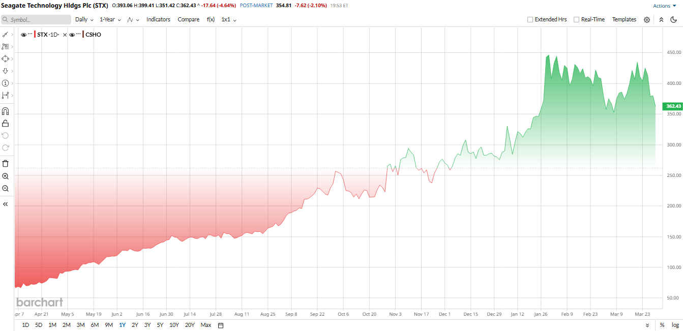 That strength has powered a huge rally in the stock. So far in 2026, Seagate shares are up about 42.26%, and over the past year, they have surged roughly 361% as AI and data-center demand accelerated. But after that run, the valuation has become very stretched. Seagate now trades at 40.35 times earnings and roughly 30.47 times EV/EBITDA, well above sector medians of around 28.79 times and 12.33 times, respectively. That leaves the stock priced for continued strong growth, with less room for disappointment.