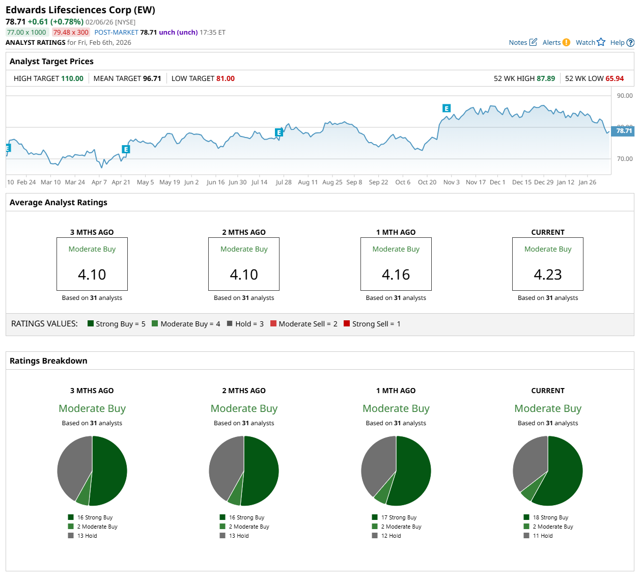 On Feb. 4, UBS Group AG (UBS) analyst Danielle Antalffy maintained a “Neutral” rating on EW but lowered its price target to $94, indicating a 19.4% potential upside from the current levels.