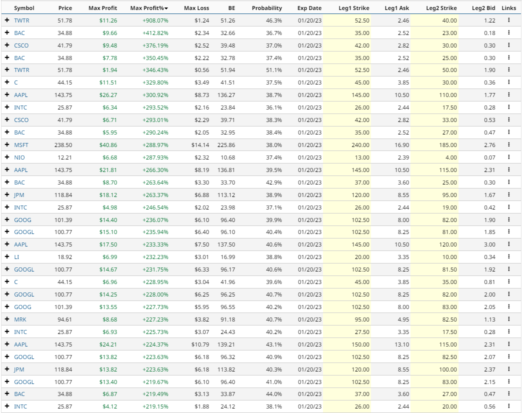 Let’s take a look at Barchart’s Short Bear Put Spread Screener for today: