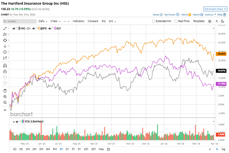 HIG stock has underperformed the S&P 500 Index’s ($SPX) 17% gains over the past 52 weeks, with shares up 10.6% during this period. However, it outperformed the State Street Financial Select Sector SPDR ETF’s (XLF) marginal gains over the same time frame.