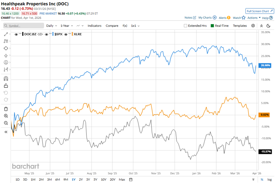 DOC stock has decreased nearly 17% over the past 52 weeks, lagging behind the broader S&P 500 Index's ($SPX) nearly 17% gain and the State Street Real Estate Select Sector SPDR ETF's (XLRE) 2% dip over the same time frame.