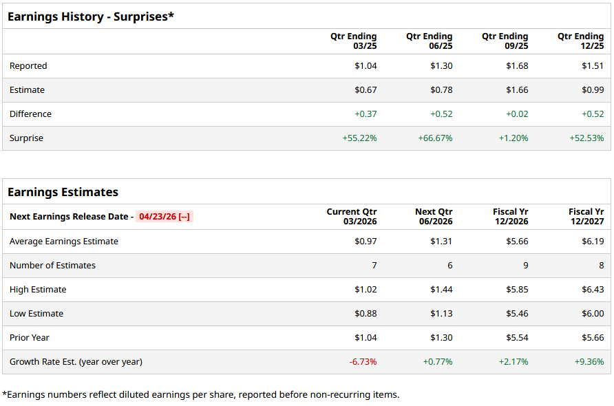 For fiscal 2026, analysts project the company’s EPS to be $5.66, up 2.2% from $5.54 in fiscal 2025. Moreover, its EPS is expected to rise by roughly 9.4% year over year (YoY) to $6.19 in fiscal 2027.