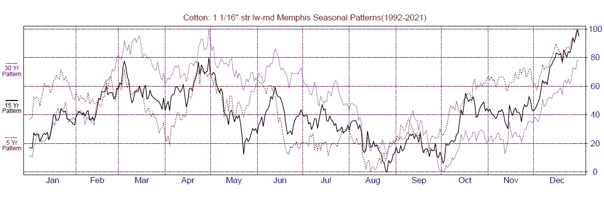 MRCI has found the seasonal low for the cotton market is in August. This seasonal pattern has me thinking we might have a price bounce soon. No seasonal pattern alone is a buy or sell— it's only what price has done historically.Â