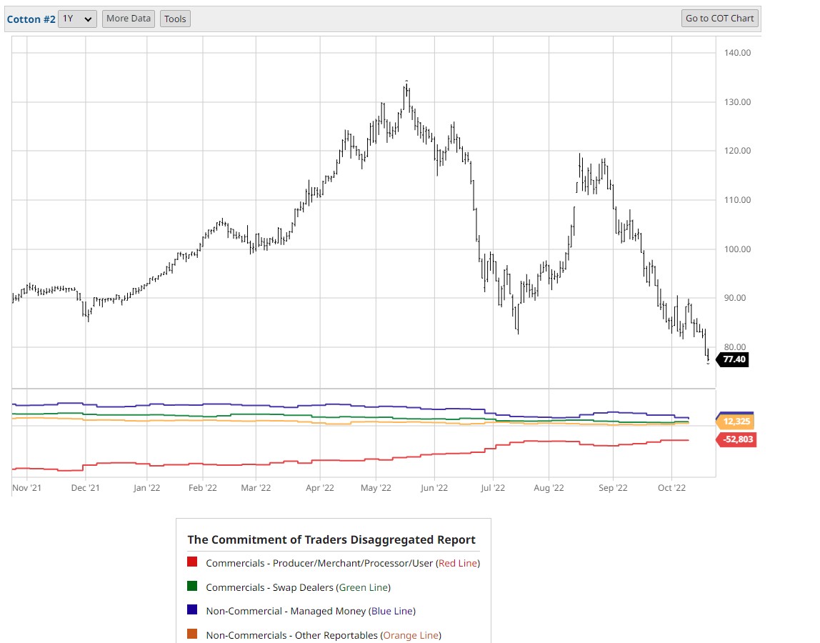 During the summer, the USDA forecasted cotton production could exceed the previous year by 4 million bales. In October, the USDA reported the slowing demand for cotton, creating fundamentally negative numbers.Â
