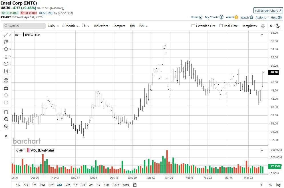 Intel stock nonetheless has yet to reclaim its year-to-date high of about $54 in late January.