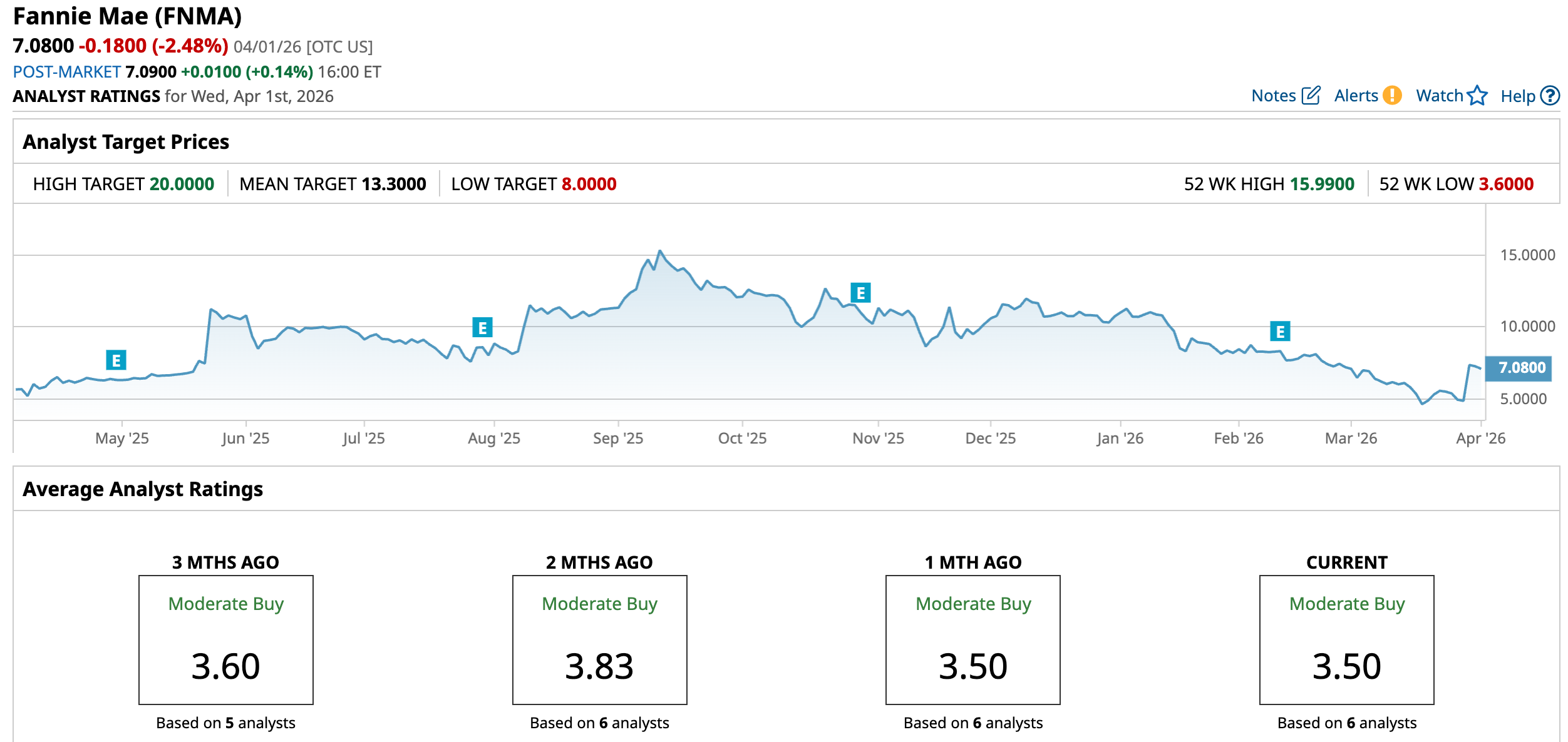 There is a lack of frequent analyst coverage of Fannie Mac’s stock, primarily because of its unique status as a GSE and its long-term conservatorship. This implies that the stock’s dynamics are mainly driven by political decisions, such as policy changes, rather than traditional financial metrics.