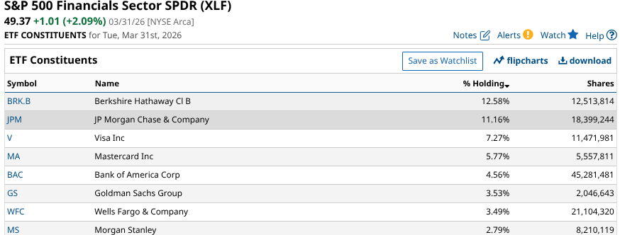 Let’s chart a few of them to see what I mean. XLF is first.