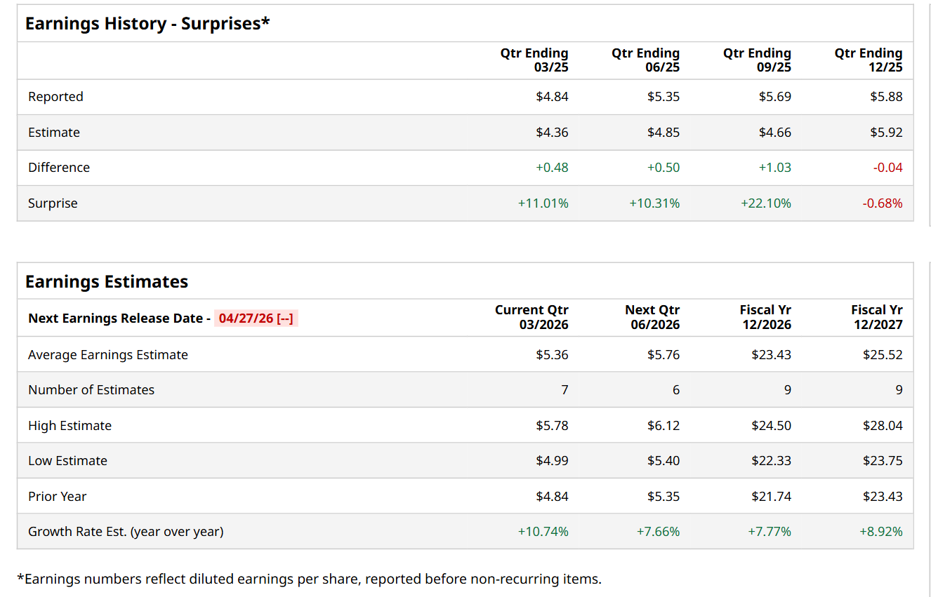 For the current fiscal year, ending in December, analysts expect UHS to report a profit of $23.43 per share, up 7.8% from $21.74 per share in fiscal 2025. Furthermore, its EPS is expected to grow 8.9% year-over-year to $25.52 in fiscal 2027.